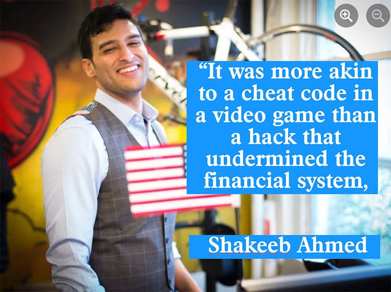He was sentenced this week, but he told the judge he likened it to a video game versus a fraud. “It was more akin to a cheat code in a video game than a hack that undermined the financial system,” he said.