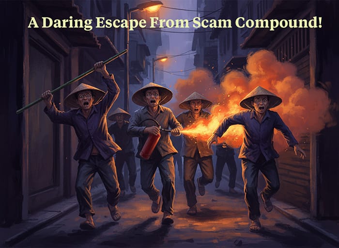 A Daring Escape From Scam Compound - They Used Weapons And Fire Extinguishers