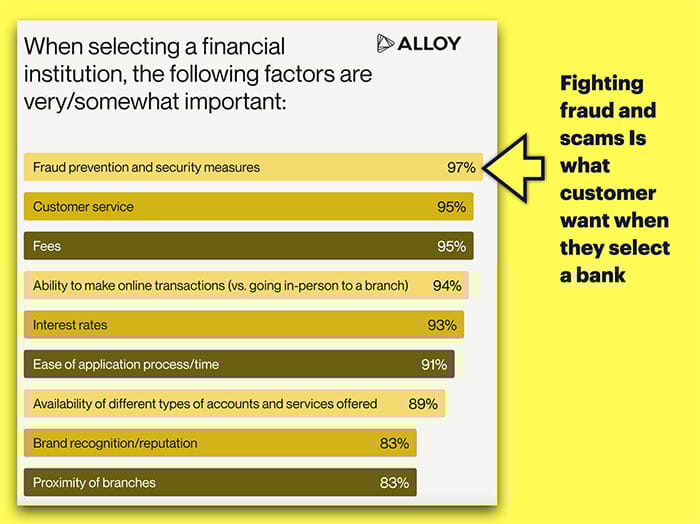 Alloy just released their 2025 State of Scams Report and this will probably surprise you. Customers most important factor by a large margin is the banks fraud prevention and security measures!